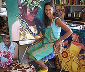 Suzy has a great love for the Hawaiian and Polynesian culture and spends much of her time going to gatherings like the Merrie Monarch Hula Festival, the Taro Festival, Tahiti Fete and the International Canoe Carving Festival. She sees such beauty in the people and wants to record this great renaissance of the Hawaiian culture. Her collectors are many, from local Hawaiians to all lovers of the Polynesian culture. Nainoa Thompson, Navigator of the HokuleÕa is an owner of one of her works. It is her great desire that one learns about and honors this beautiful culture that she lives in and feels very lucky to be a part of.